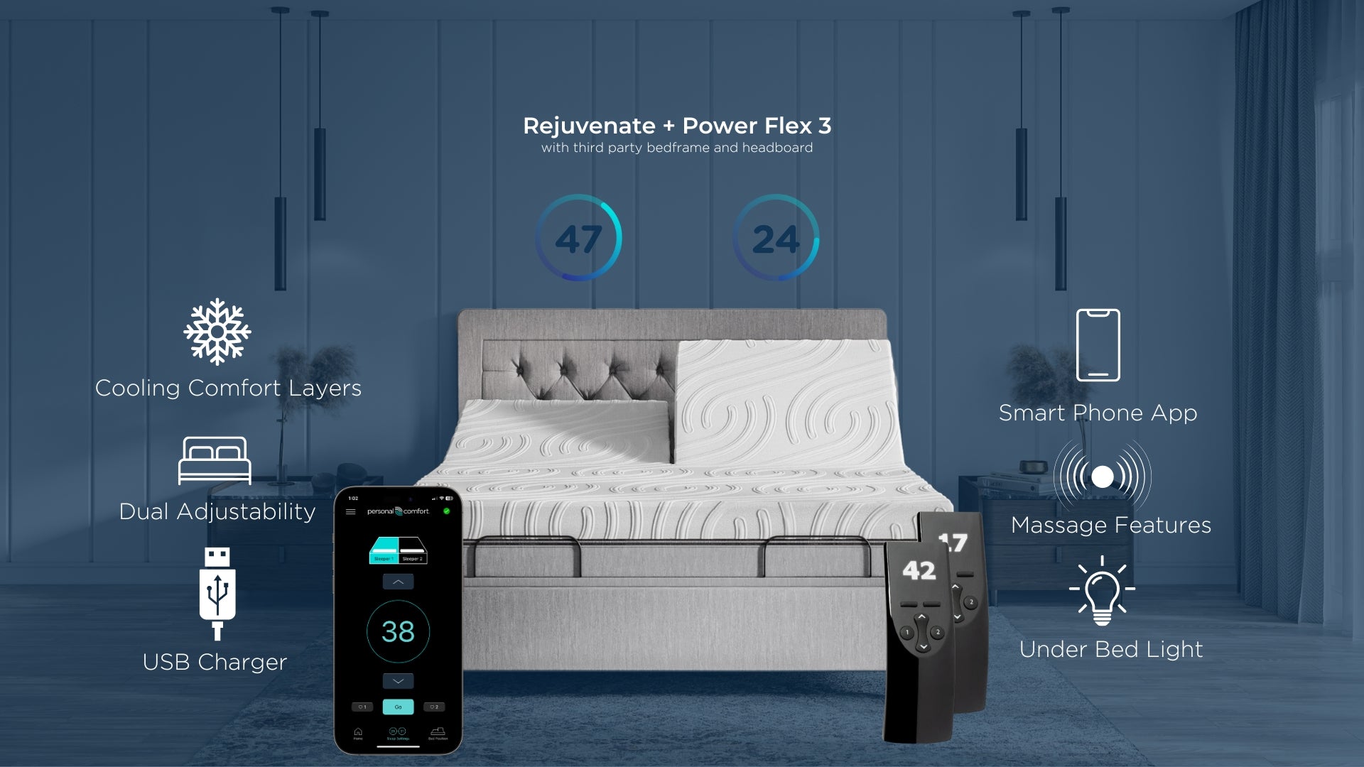 · 45 firmness settings per side with truly independent adjustable firmness and minimal motion transfer